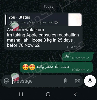 كبسولات التفاح الاخضر لحرق الدهون بشكل سريع عن طريق مكوناتها الطبيعيّة التي تتضمن مستخلصات التفاح والرمّان والجينسنغ كما تحتوي على الكولاجين والفيتامينات مثل فيتامين بي و اي والمعادن التي يحتاجها الجسم. تعمل على سد الشهية والوصول إلى الوزن المرغوب عن طريق رفع معدل حرق الدهون و تزويد الجسم بطاقة ثابتة طوال أي نشاط. كما تساعد على زيادة التركيز والحفاظ على مزاج جيد. يمكن أخذ هذه الكبسولات من قبل النساء والرجال فوق عمر الـ 18.